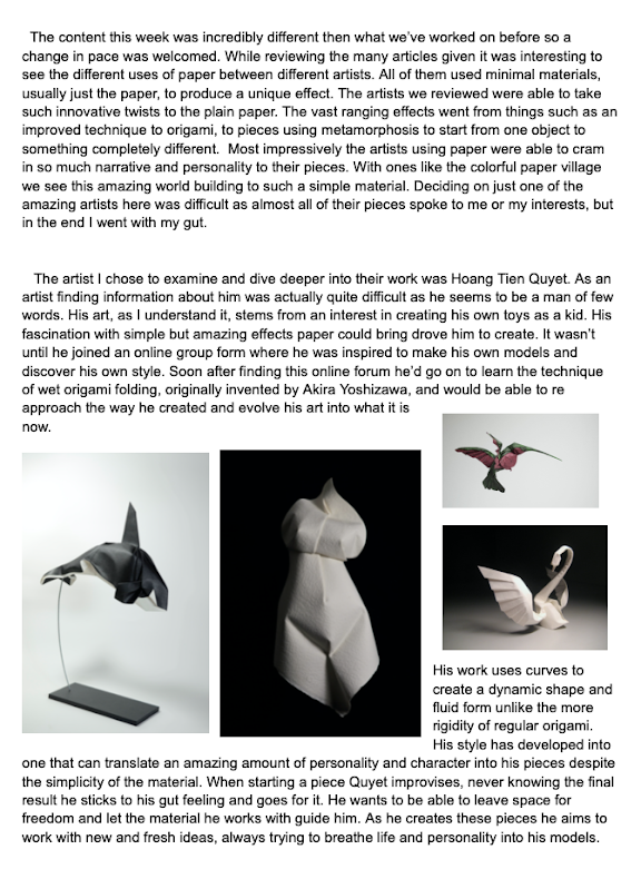 Looking Cool Joker For this week’s project we’re starting a new milestone project. Because of this we were challenged with creating an object that meant something to us and for me I decided to pick two objects that related to my love for gaming. I choose Joker’s mask and dagger from the game Persona 5. I tried to document everything that I did along the way to show my process. While this week I pretty much only focused on the mask, I did start my work on the knife. However this class the template for the mask was finished. Process Work! Modeling the Mask! Break down of pieces: Eye socket: For this pieces its located in the middle of the mask's eye socket. Because of its awkward positioning we are unable to unfold it in the middle meaning we have to separate this piece. The unfolding is actually pretty simple if you are able to write down your process of how you unfold, if you reference some of my paper notes I wrote where the strip starts and ends as a means to keep tr...